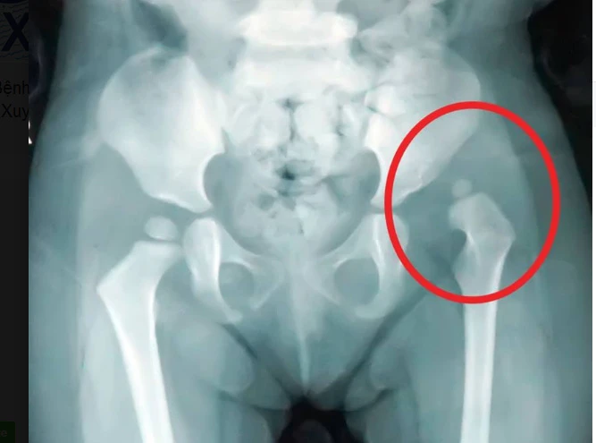 Kết quả chụp X-quang cho thấy bé T. bị trật khớp háng trái bẩm sinh. Ảnh: LÊ PHỤNG