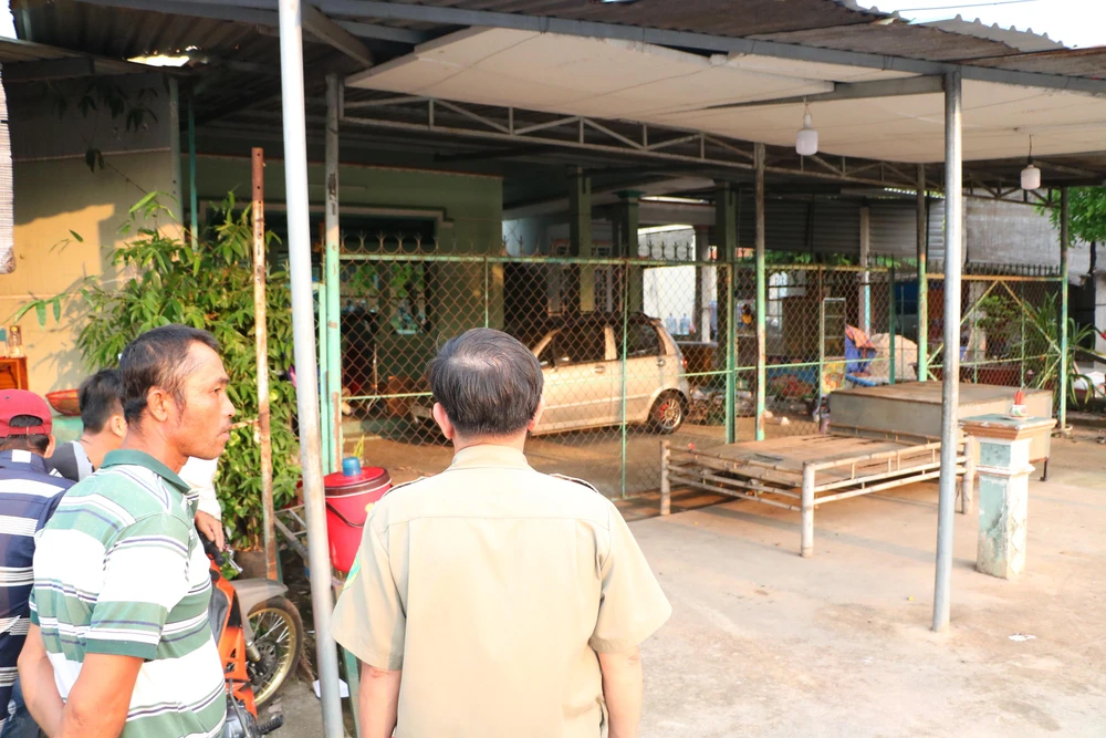 Lực lượng chức năng phong tỏa hiện trường để tránh người dân bị trâu điên tấn công.