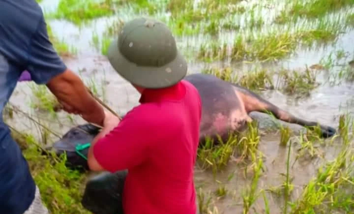 Con trâu đực bị sét đánh chết là của gia đình anh Nguyễn Văn Hiểu (trú xóm Bích Thị, xã Thanh Giang).