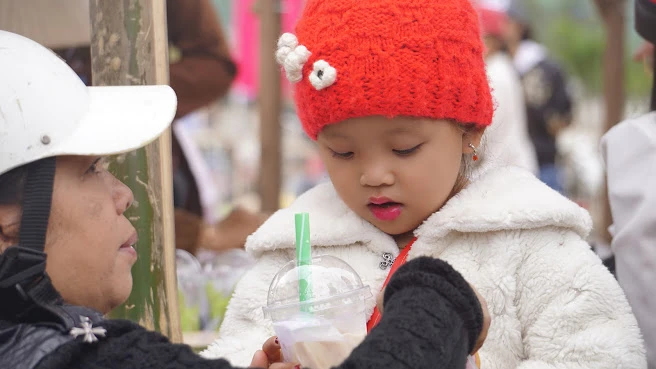Em nhỏ theo mẹ đến trẩy hội. ẢNH: CHÂN TÂM.