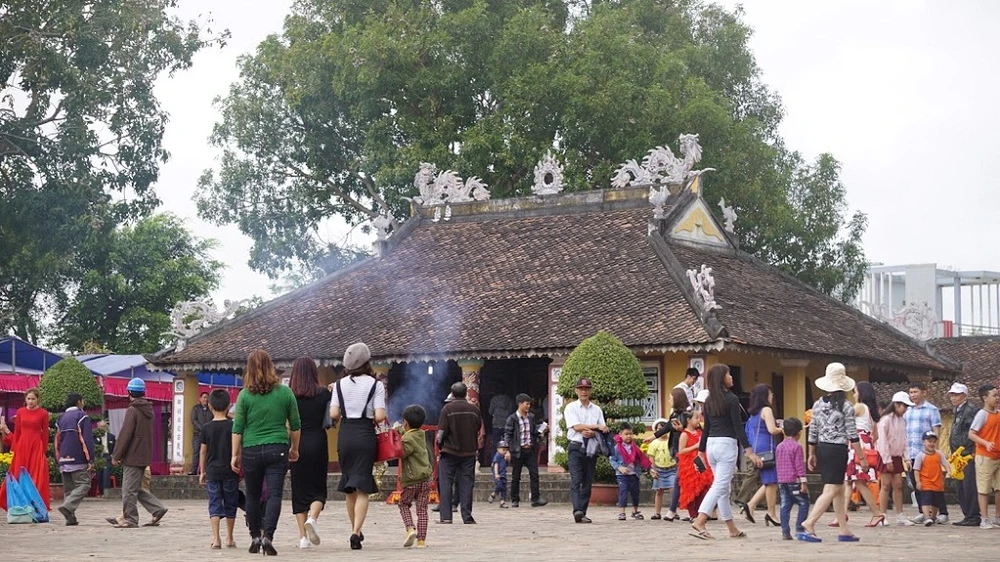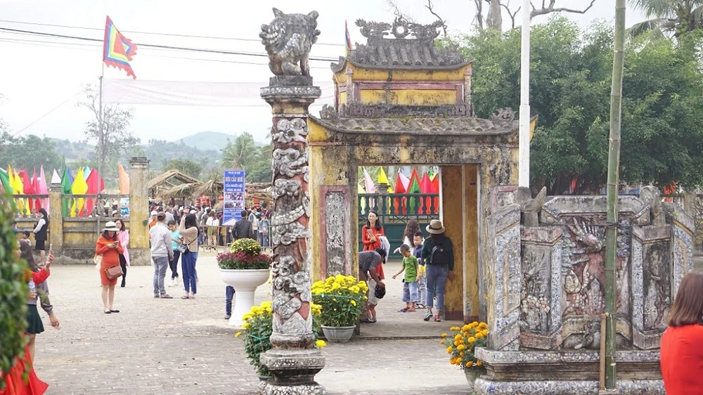 Đông đảo người dân đến thắp nhang cho vua Quang Trung tại An Khê Đình. ẢNH: CHÂN TÂM.