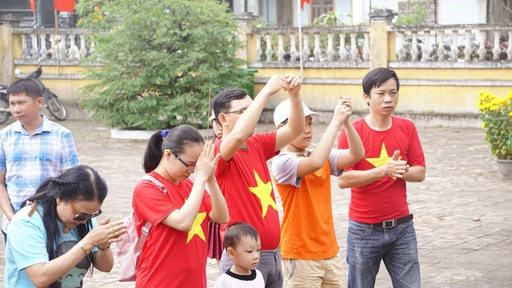 Thắp nén nhang bày tỏ sự tri ân với vua Quang Trung. ẢNH: CHÂN TÂM.