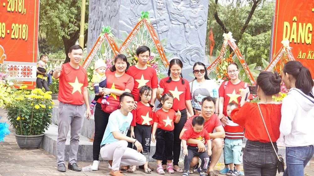 Nhiều gia đình cùng mang áo in hình lá cờ Tổ quốc đến tham dự lễ hội. ẢNH: CHÂN TÂM.