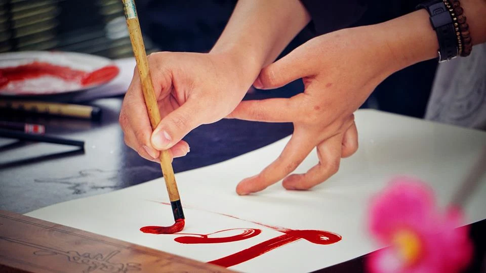 Viết thư pháp. ẢNH: CHÂN TÂM.