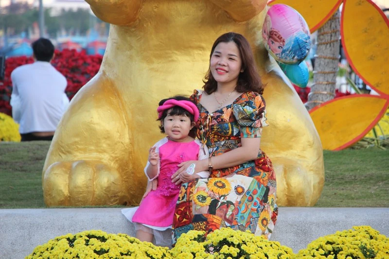 Những ngày cận tết, thời tiết tại Đà Nẵng vô cùng lý tưởng. Trời có nắng to nhưng không nóng, chiều và tối gió se lạnh. Các gia đình với nhiều thế hệ đã tranh thủ tiết trời vào xuân để trẩy hội, chụp ảnh lưu lại khoảnh khắc xuân bên người thân.