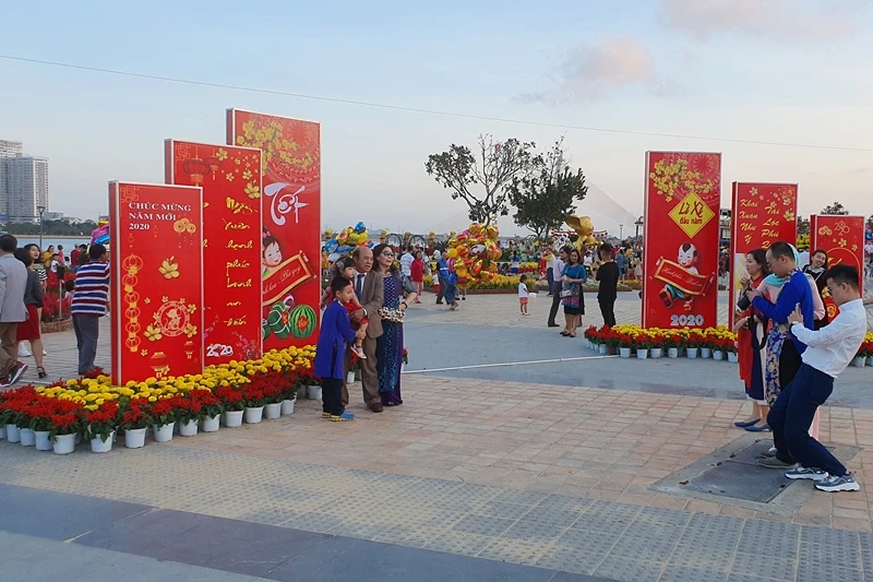 Mở cửa trước Tết Nguyên đán 2020 ít ngày, đường hoa tại khuôn viên bờ tây cầu Rồng thu hút hàng nghìn lượt người dân, du khách tham quan, chụp ảnh.