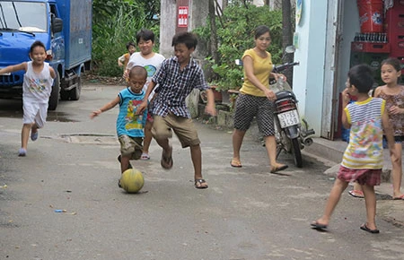 (TP.HCM) tụ tập nhau đá bóng làm huyên náo cả khu dân cư. Bữa nọ, cú sút của một tiền đạo nhóc tì quá mạnh nhưng lại thiếu chuẩn xác khiến quả bóng thay vì bay vào cầu môn dã chiến đã bay thẳng vào cửa nhà hàng xóm. Kết quả: Cánh cửa nhà hàng xóm bị móp thảm hại.
