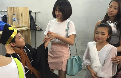 | Toát mồ hôi để chỉ bài cho các em Có tới trường quay mới thấy các nhà sản xuất vất vả định hướng cho trẻ con và phụ huynh nhiều như thế nào chứ không chỉ chú tâm vào tiết mục biểu diễn trong vài phút lên sóng. “Có khi chúng tôi ngồi giải thích cả buổi, toát mồ hôi hột để nói cho thí sinh hiểu vì sao tiết mục của họ không phù hợp, các em giỏi chỗ nào, dở chỗ nào… để phát huy” - nghệ sĩ hài Việt Hương, một trong hai giám khảo của chương trình Thử thách danh hài, cho biết. Trong một tiết mục tại chương trình Người hùng tí hon, có thí sinh nhảy tốt nhưng có phần đáp sàn bằng gối khá nguy hiểm, giám khảo John Huy Trần đã góp ý cho thí sinh nhí này và biên đạo cẩn trọng hơn để tránh chấn thương xảy ra cho em. Huy Trần cũng dặn dò thí sinh khi tập mà đau hãy nói ngay chứ đừng im lặng cố gắng sẽ dễ xảy ra những chấn thương nguy hiểm. ______________________________________ Khoan hãy bàn đến việc nuôi dưỡng và phát triển các tài năng này mà trước tiên hãy xem mỗi gameshow, chương trình truyền hình là một sân chơi cho con dạn dĩ hơn. Như bé Mai Anh (chín tuổi) nhà tôi đây, ở nhà cháu thích hát nên tôi cho tham gia để cháu hát cho vui nhưng rồi tới đây cháu được học về thanh nhạc, cháu dạn dĩ hơn, không còn nhút nhát trước bạn bè, đám đông… Với tôi, vậy là quá vui rồi. Chị THÙY LINH, mẹ của bé Mai Anh tham gia chương trình Người hùng tí hon |