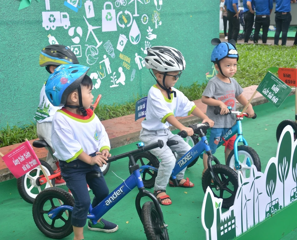 Trẻ em tham gia cổ động sống vì môi trường xanh tại Ngày hội Sống xanh 2018. Ảnh: MINH TÚ