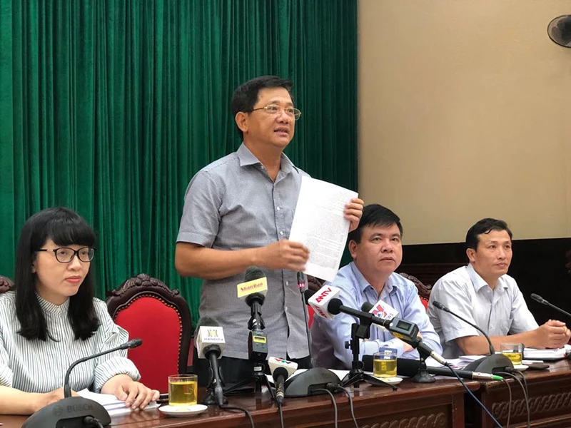 Ông Phạm Xuân Tiến, Phó Giám đốc Sở GD&ĐT TP Hà Nội, thông tin về chương trình trẻ em Hà Nội được uống sữa miễn phí.