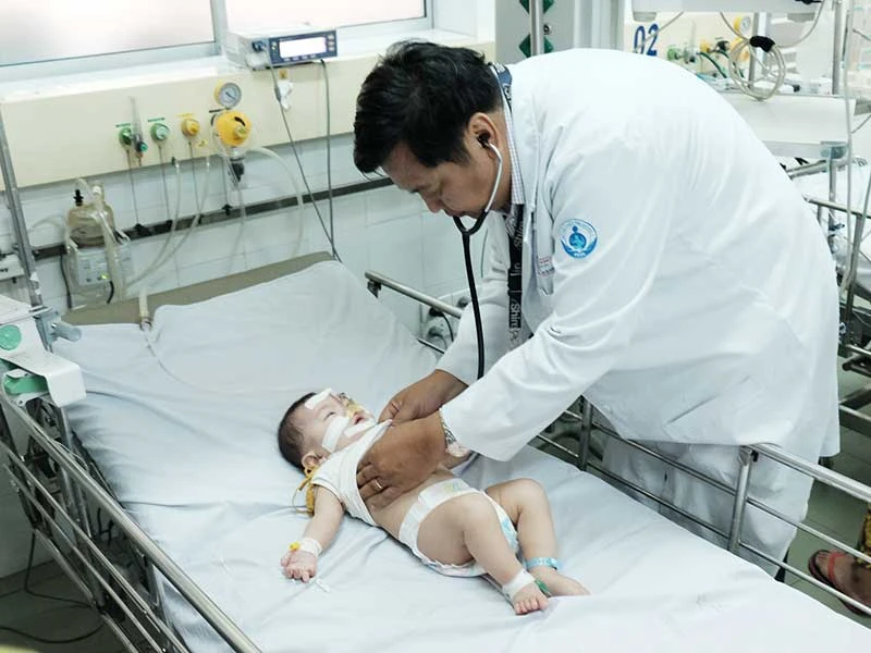 Bác sĩ đang khám cho một ca bệnh nhi mắc động kinh tại BV Nhi đồng 1. Ảnh: HP