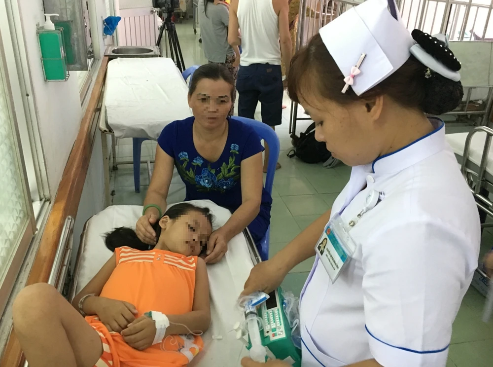 Bệnh nhi Y. (bảy tuổi) đang được theo dõi tại BV Nhi đồng 2.