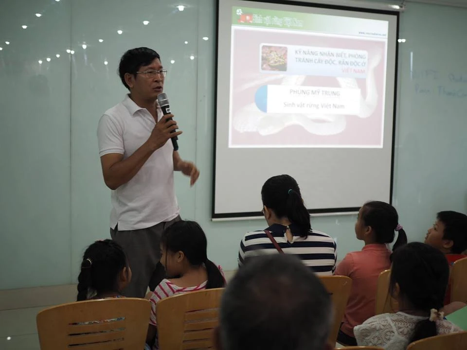 Ông Phùng Mỹ Trung, nhà nghiên cứu sinh vật rừng Việt Nam, chia sẻ tại TP.HCM, các loại rắn ông đã từng gặp bao gồm nọc độc thần kinh và nọc độc tế bào. Cho nên, các bé muốn phân biệt được cần phải tham gia vào các lớp học và các nhà nghiên cứu sẽ hướng dẫn chi tiết về các loại đó.