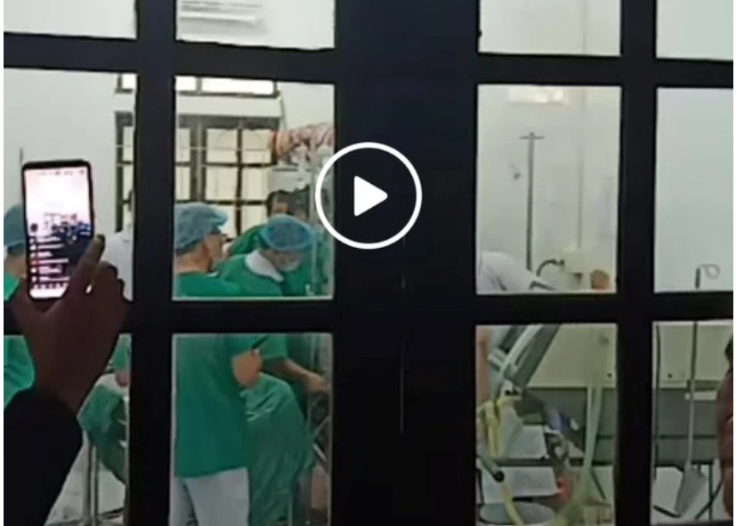 Sau khi mổ xong, bé trai 3 kg được đưa ra và khi các y bác sĩ đang bóp bóng Ambu để cứu bé thở trở lại thì một số người nhà xông vào phòng.