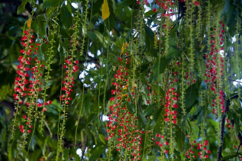 Hoa Lộc vừng xum xuê, buông xuống như bức mành màu đỏ rất đẹp.