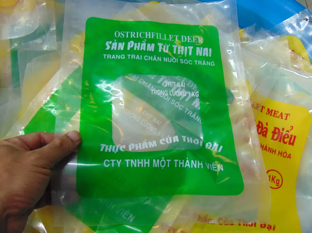 Bao bì in dòng chữ "sản phẩm từ thịt nai". Ảnh: TRẦN NGỌC