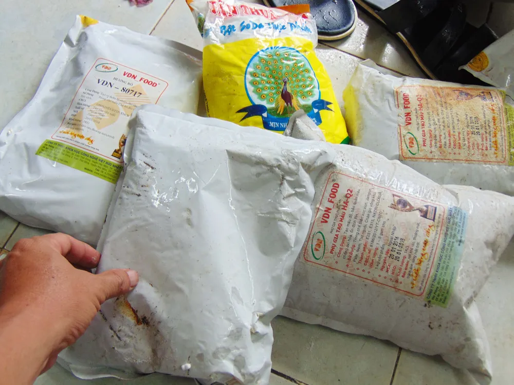 Năm bịch đựng các loại bột màu trắng. Ảnh: TRẦN NGỌC