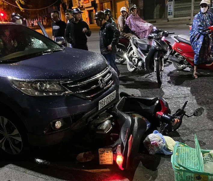 Thông tin ban đầu, khoảng 21 giờ 30 ngày 14-11, trên đường Hùng Vương (TP Quảng Ngãi) xảy ra vụ va chạm giữa ô tô 76A-020.91 và xe máy.