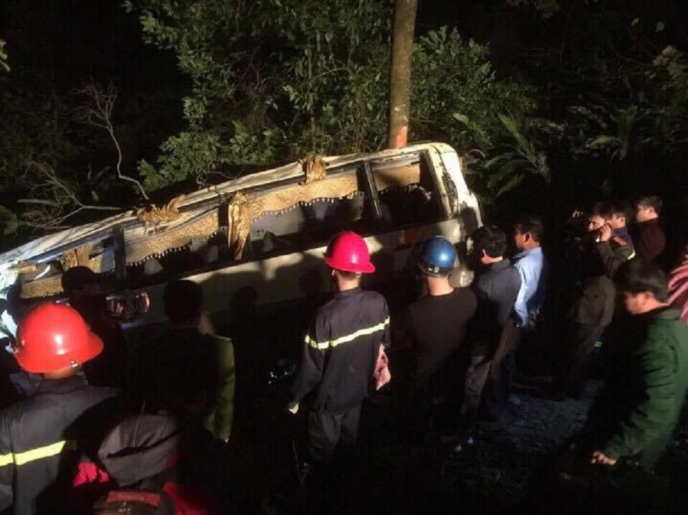 Chiếc xe lao xuống vực sâu, cách mặt đường khoảng 100 m khiến một người tử vong tại chỗ, 22 người nhập viện cấp cứu.