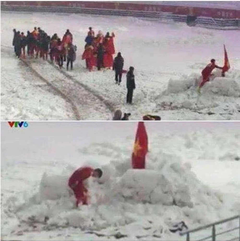 Cũng như các bạn, mình xem đi xem lại hàng chục lần video các em cào tuyết cho đồng đội chuẩn bị cú sút phạt.