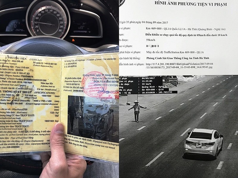 Trước đó anh Hà nhận được hai ảnh chụp văn bản “Hình ảnh phương tiện vi phạm”, thể hiện chiếc xe biển số giống của anh vi phạm tốc độ trong hai năm 2017, 2018 ở Hà Tĩnh. Tuy nhiên, anh này khẳng định xe anh chưa từng chạy vào địa phận Hà Tĩnh.
