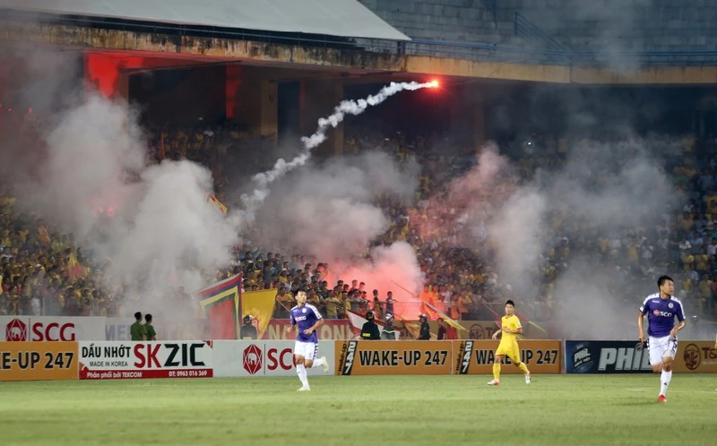 Trước đó ở trận đấu Hà Nội - Nam Định trên sân Hàng Đẫy tối 11-9, lực lượng an ninh đã không thể ngăn chặn các CĐV mặc áo cổ vũ Nam Định đốt pháo sáng, đồng thời sử dụng pháo dù bắn từ khán đài B sang khán đài A khiến một CĐV nữ Hà Nội trúng pháo và trọng thương.