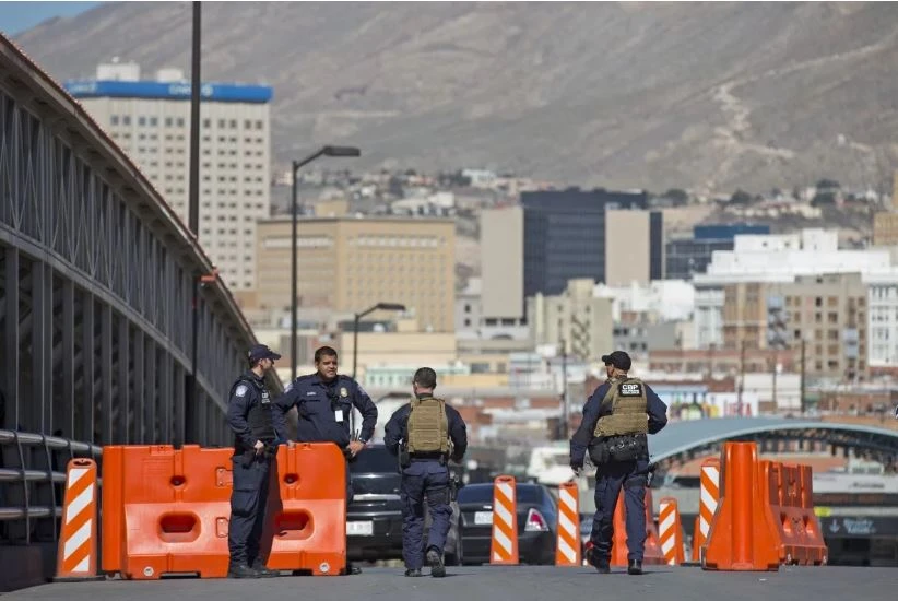 Các nhân viên Hải quan Mỹ tuần tra tại một điểm nhập cảnh ở TP El Paso (bang Texas), gần khu vực thai phụ 19 tuổi té ngã. Ảnh: AP