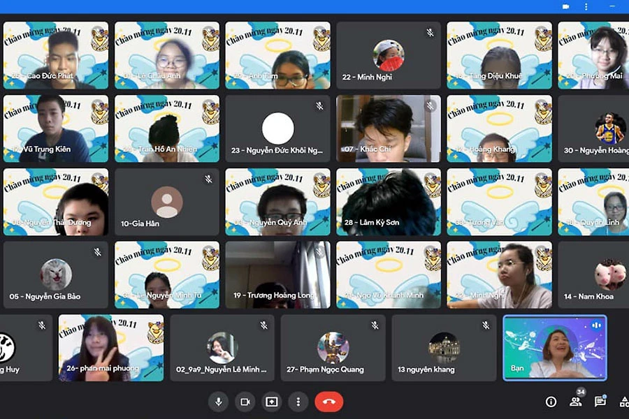 Tiết học địa lý của cô Võ Thị Kim Hiệp cùng lớp 9A9 bắt đầu như mọi ngày, HS đồng loạt tắt camera. Thế nhưng khi cô Hiệp vừa nói xong về nội dung tiết học mới, cả lớp liền mở camera, tất cả ảnh nền đã được đổi thành ảnh chúc mừng ngày 20-11.