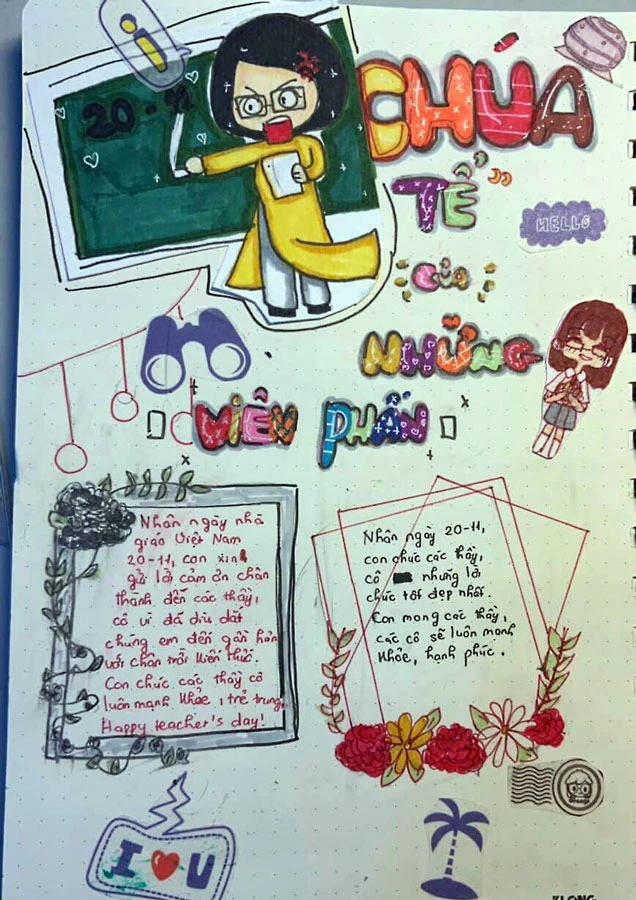 | Những lời chúc đậm chất môn học Chưa đến ngày 20-11, cô Nguyễn Ngọc Phượng Linh, GV môn âm nhạc, đã nhận được nhiều lời chúc của học trò. “Người ta yêu cô từ quãng hai lên quãng tám, còn 8A14 yêu cô từ đầu này cây piano sang tuốt đầu bên kia”. Nhận được lời chúc của học trò, cô Linh vừa vui mừng vừa bất ngờ với từng câu chữ. “Mọi năm các em được gặp trực tiếp GV để hát và gửi lời chúc mừng. Năm nay, vì dịch bệnh nên các em đã gửi lời chúc qua tin nhắn nhưng những lời chúc này có phần độc đáo hơn vì không bị mắc cỡ khi đứng trước lớp và thầy cô” - cô Linh xúc động.