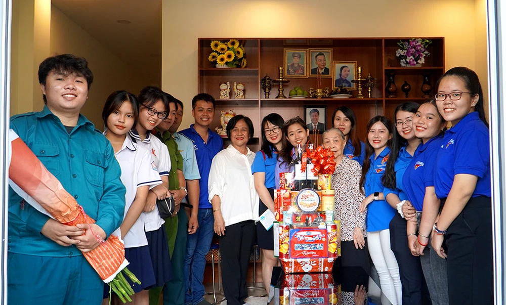 Sáng 25-7, Chi đoàn Báo Pháp Luật TP.HCM phối hợp với Đoàn Thanh niên phường 4 quận Tân Bình, Chi đoàn Viện kiểm sát quận Tân Bình, Nhà máy A41, Xí nghiệp khảo sát Hàng hải miền Nam đã đi thăm, tặng quà cho hai Mẹ Việt Nam anh hùng trên địa bàn phường.