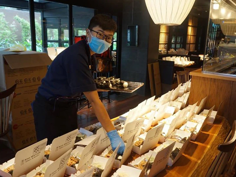Một nhà hàng Nhật chuẩn bị suất ăn tối cho đội ngũ y, bác sĩ. Ảnh do đơn vị cung cấp