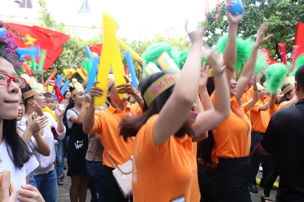 Cổ động viên reo hò khi Quang Trường trả lời đúng.