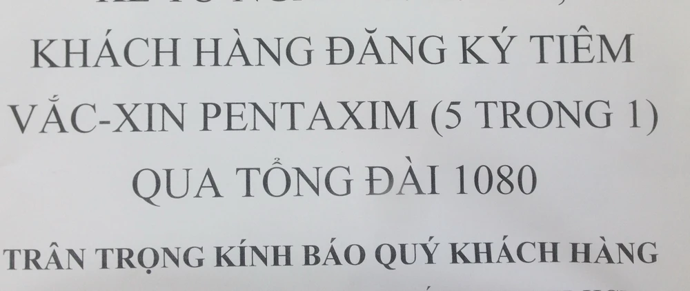 Lãnh đạo Viện Pasteur TP lưu ý phụ huynh chỉ đưa trẻ đến tiêm theo lịch hẹn từ tổng đài 1080, không đưa trẻ đến Viện để đăng ký trực tiếp.