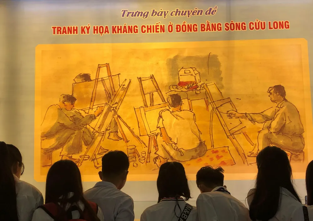 Ký họa kháng chiến trình chiếu cho khách tham quan.