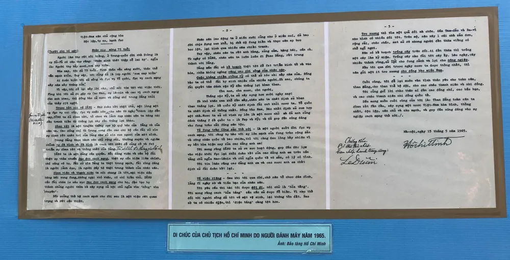 Bản di chúc do Chủ tịch Hồ Chí Minh đánh máy.