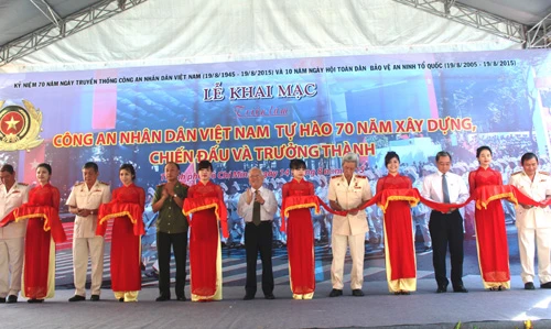 Lãnh đạo Thành phố cắt băng khai mạc triển lãm. Ảnh: LÊ THOA.