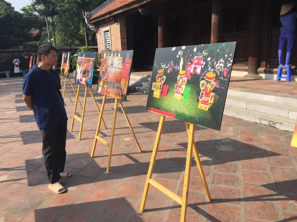 Người dân xem triển lãm tại Văn Miếu.