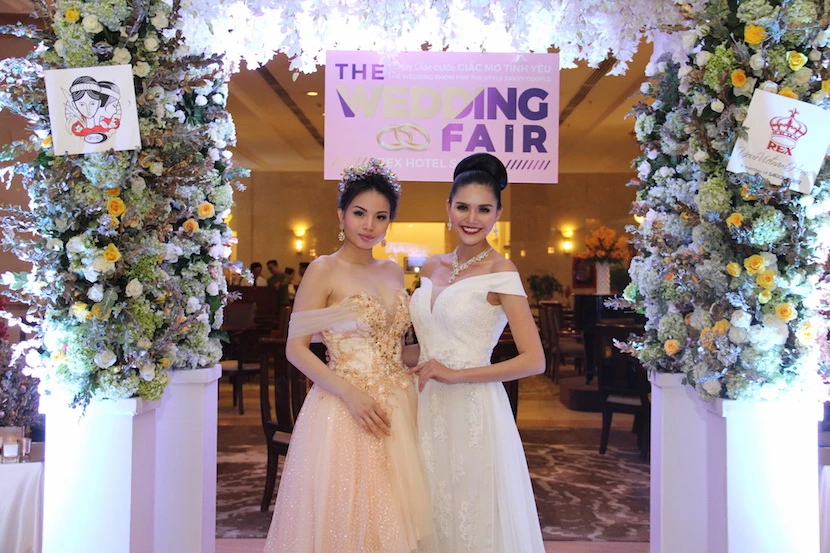 Không gian triển lãm được trang trí bằng 4 tấn hoa tươi và phụ kiện do Calla Lily thực hiện. Nơi đây cũng tái hiện những khung cảnh tiệc cưới xa hoa theo phong cách vương triều Việt Nam và châu Âu.