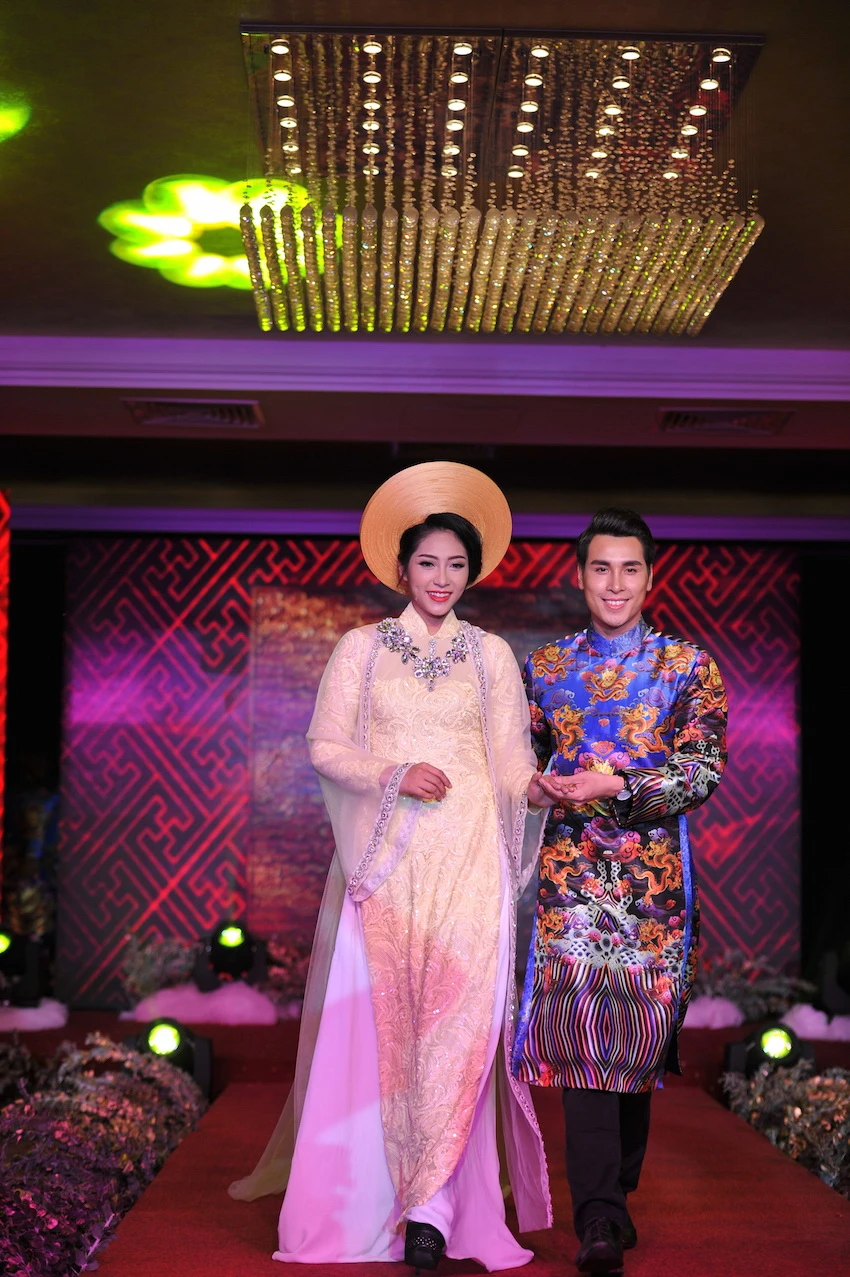 Hai siêu mẫu Huỳnh Minh Toán và Phạm Thùy Linh trên sàn diễn