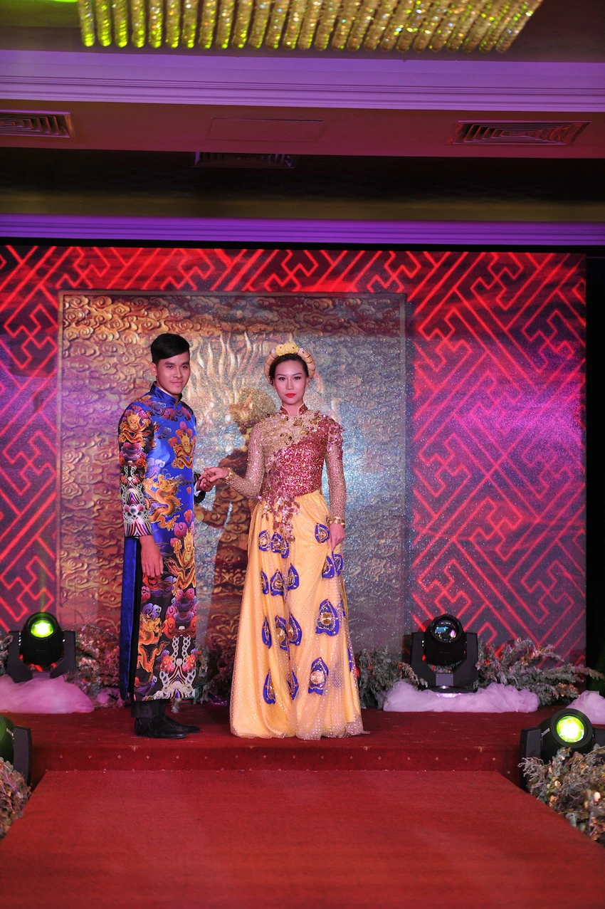 Trong đêm 16-4, tại triển lãm đã trình diễn bộ sưu tập áo cưới, áo dài cưới cách điệu đính đá quý và pha lê của các nhà thiết kế nổi tiếng trong nước.