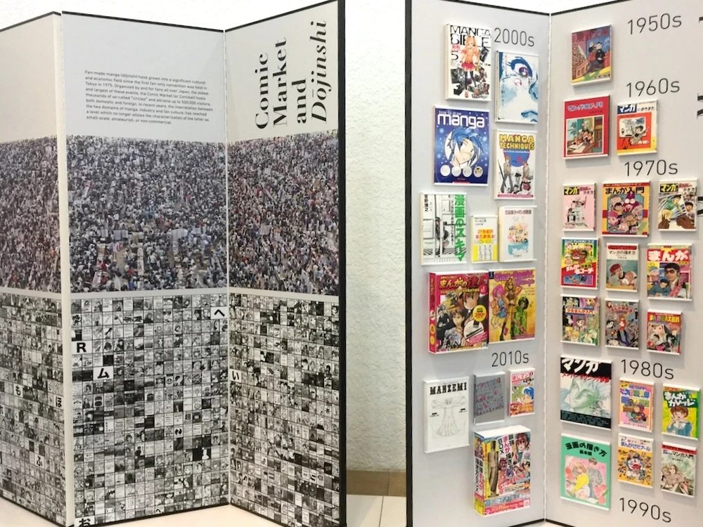 Quỹ giao lưu Quốc tế Nhật Bản (The Japan Foundation) đã hai lần tổ chức triển lãm liên quan tới manga đương đại. Đầu tiên là triển lãm Manga: Truyện tranh Nhật Bản ngắn hiện đại (Châu Âu, 1999-2003) và Không gian mới của Manga: Nghệ thuật truyện tranh đương đại Nhật Bản (Châu Á, 2010-11).