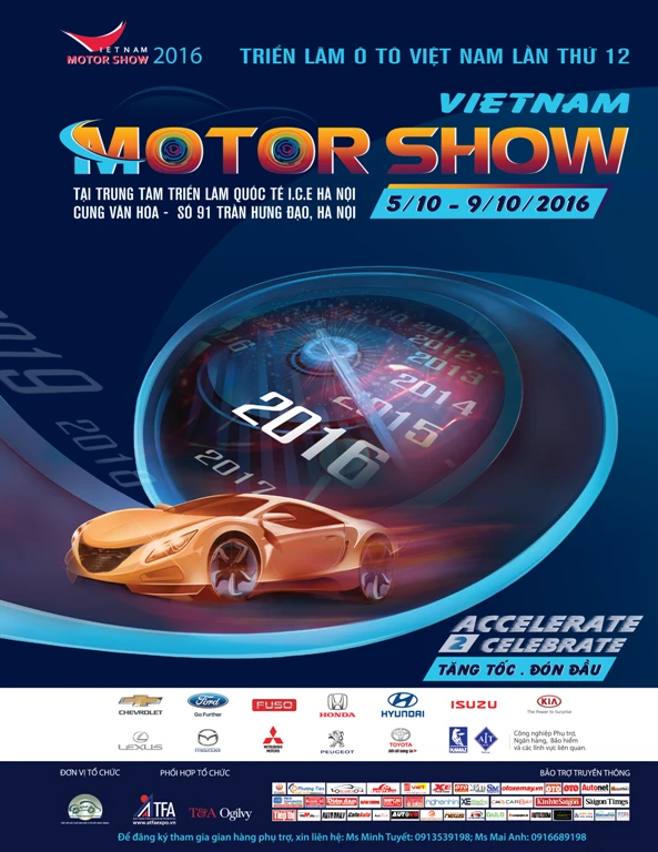 VMS 2016 lựa chọn biểu tượng là chiếc “đồng hồ tốc độ”, qua đó làm nổi bật thông điệp “Accelerate to Celebrate: Tăng tốc - Đón đầu”. Theo đó, năm 2016 môi trường kinh doanh chứng kiến nhiều đổi thay cả về chính sách lẫn nhu cầu tiêu dùng. Chính sách giảm thuế tiêu thụ được áp dụng từ tháng 7-2016 được nhận định là sẽ giúp giảm giá sâu ở nhiều dòng xe, tạo ra cơ hội sở hữu xe hơi cho nhiều khách hàng ở phân khúc tầm trung. Mặt khác, ngành ô tô đang chứng kiến sự ra đời của hàng loạt công nghệ điều khiển xe số hóa, mang đến trải nghiệm hiện đại và an toàn hơn cho người dùng. Các xu hướng này sẽ được thể hiện rõ nét trong những dòng sản phẩm mà các đơn vị tham gia dự kiến mang tới VMS 2016.
