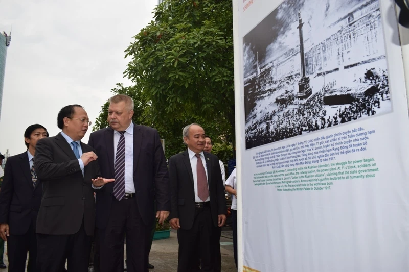 Sáng nay 1-11 tại phố đi bộ Nguyễn Huệ (quận 1, TP.HCM) đã khai mạc triển lãm “Thắm tình hữu nghị Việt Nam - Liên bang Nga”. Buổi triển lãm nằm trong chương trình chào mừng kỷ niệm 100 năm Cách mạng Tháng Mười Nga vĩ đại (7-11-1917 - 7-11-2017).