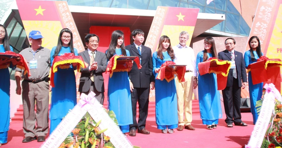 Các học giả cắt băng khai mạc triển lãm “Hoàng Sa-Trường Sa: sự thật lịch sử”. LÊ PHI