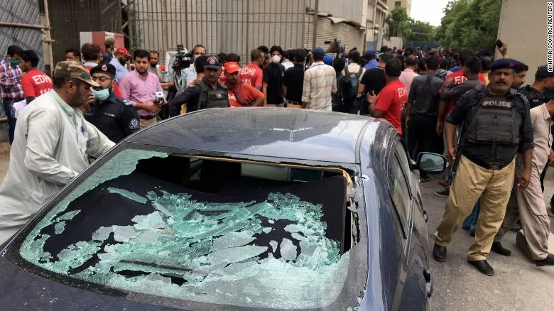 Hiện trường vụ nổ súng ở Sàn giao dịch chứng khoán Pakistan. Ảnh: CNN