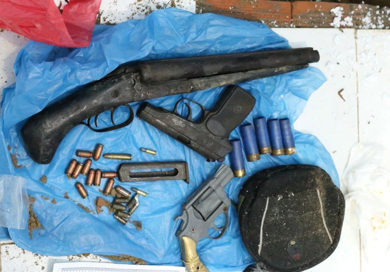 Đặc biệt, khám xét nơi của Đông nhóc (tạm trú ở phường Bình Chuẩn), công an thu giữ 1 khẩu kalip, 1 khẩu K59, 1 khẩu súng ru lô, 11 viên đạn k59 và một số đạn bắn hoa cải, đạn chì.
