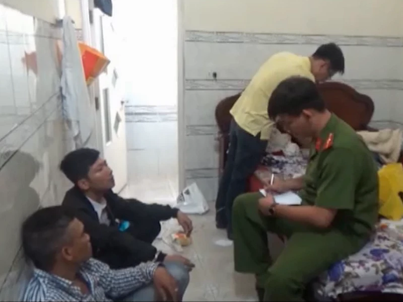 Các đối tượng tàng trữ và sử dụng trái phép ma túy trong nhà nghỉ bị phát hiện. Ảnh: CTV