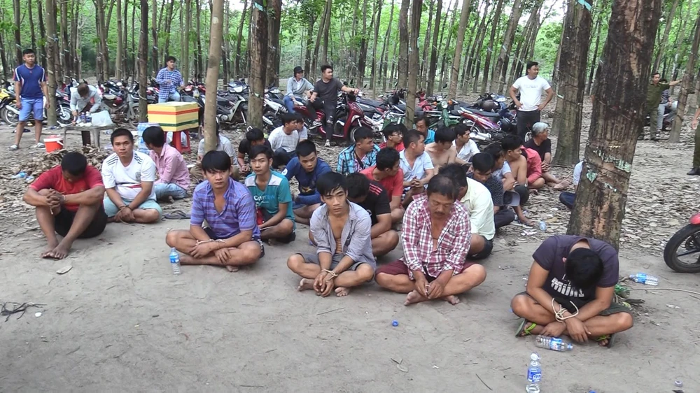 Khoảng 14 giờ cùng ngày, các trinh sát phòng Cảnh sát hình sự bất ngờ đột kích vào một rừng cao su tại xã Tân Hiệp (huyện Phú Giáo, Bình Dương). Khi thấy lực lượng Công an, các con bạc bỏ chạy toán loạn, nhưng bị các trinh sát nhanh chóng khống chế, tóm gọn.