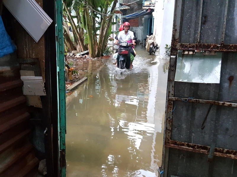 Tình trạng ngập xảy ra ở khu dân cư Tân Quy (quận 7, TP.HCM).