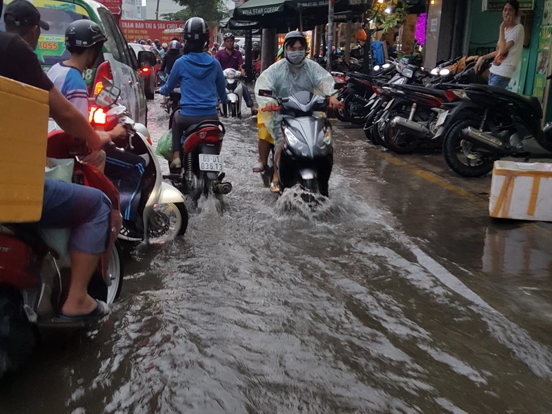Cuối giờ chiều 4-12, một số khu vực tại TP.HCM đã xuất hiện tình trạng ngập do ảnh hưởng bởi triều cường và cơn mưa kèm theo.